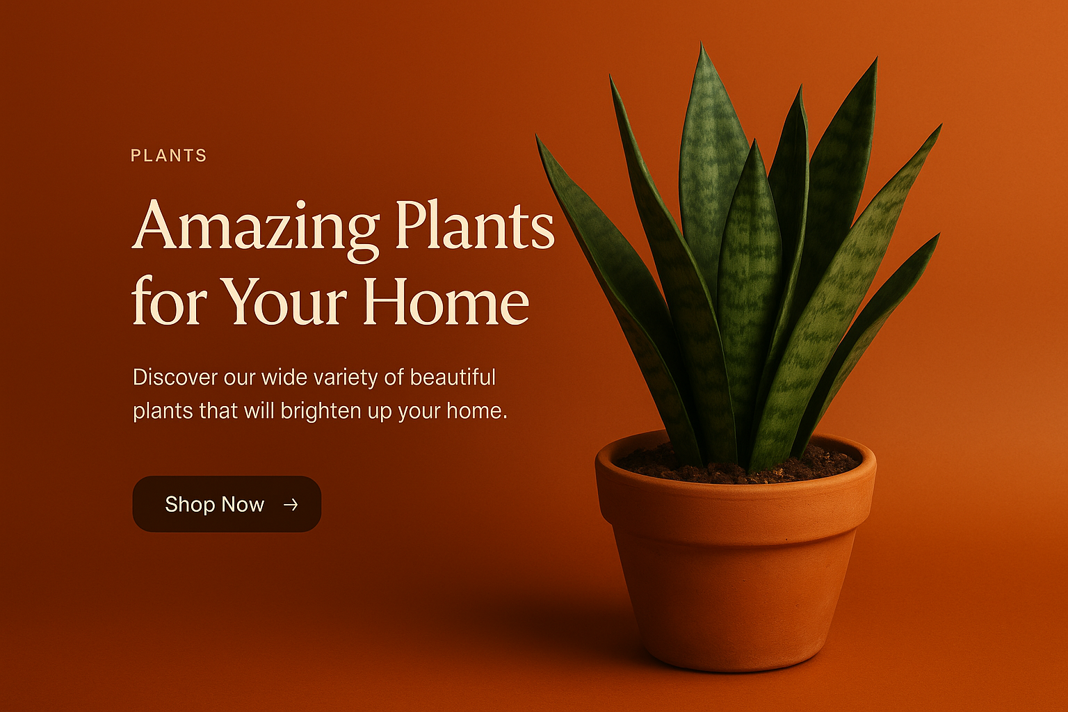 A stylish representation of an indoor plant in a terracotta pot against a warm, gradient background. The design features an inviting header and a call-to-action button.