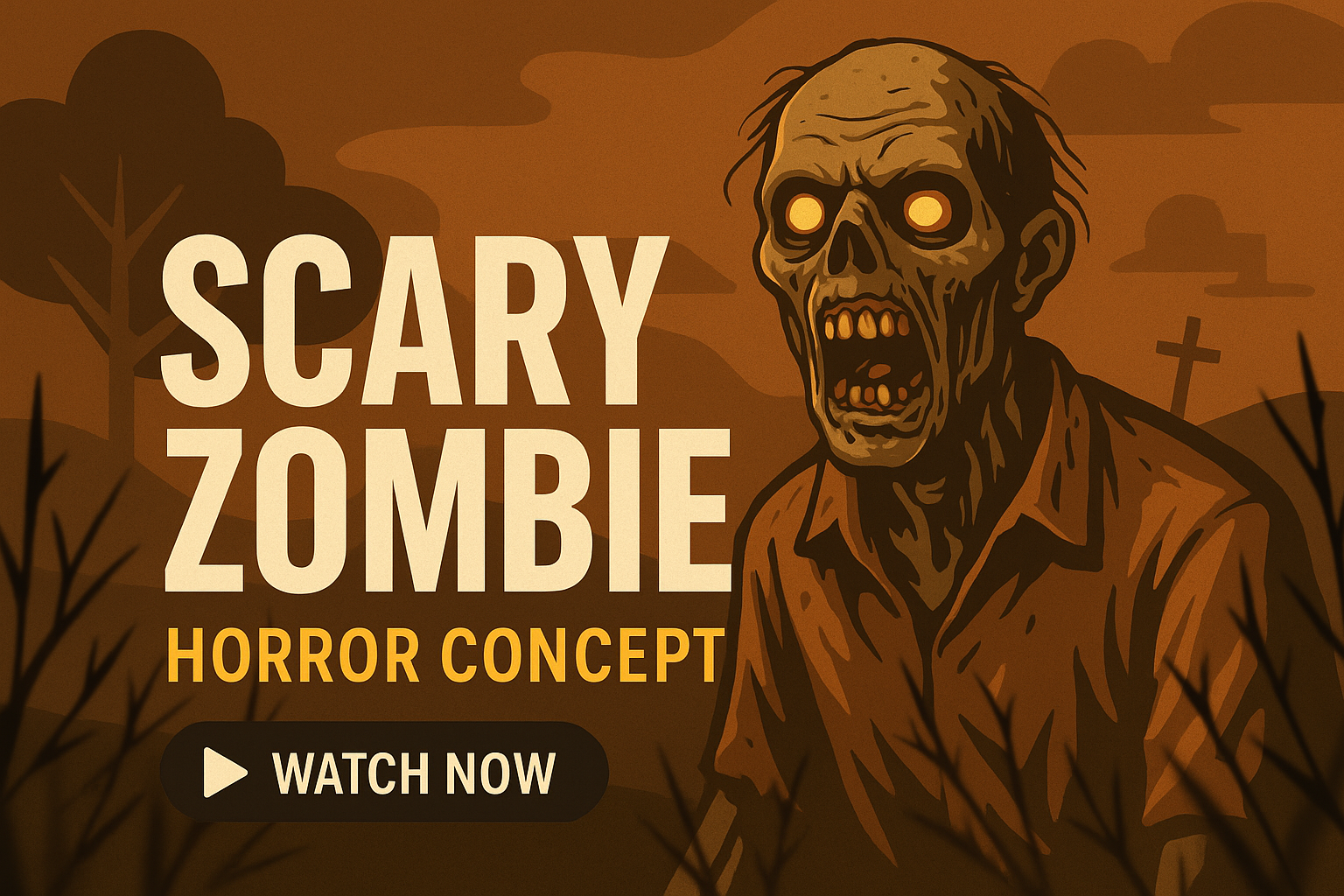 /Collection: /by davooda/Type: PNG/A digital illustration featuring a scary zombie in a dark, eerie landscape. The design is suitable for horror-themed promotions or content, perfect for attracting an audience interested in horror media.