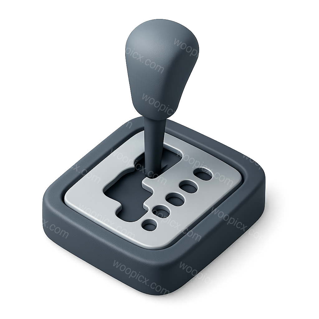 A sleek, isometric 3D icon of a car gear shift, showcasing a modern design with a volumetric feel. The icon features a dark color scheme and a transparent background.