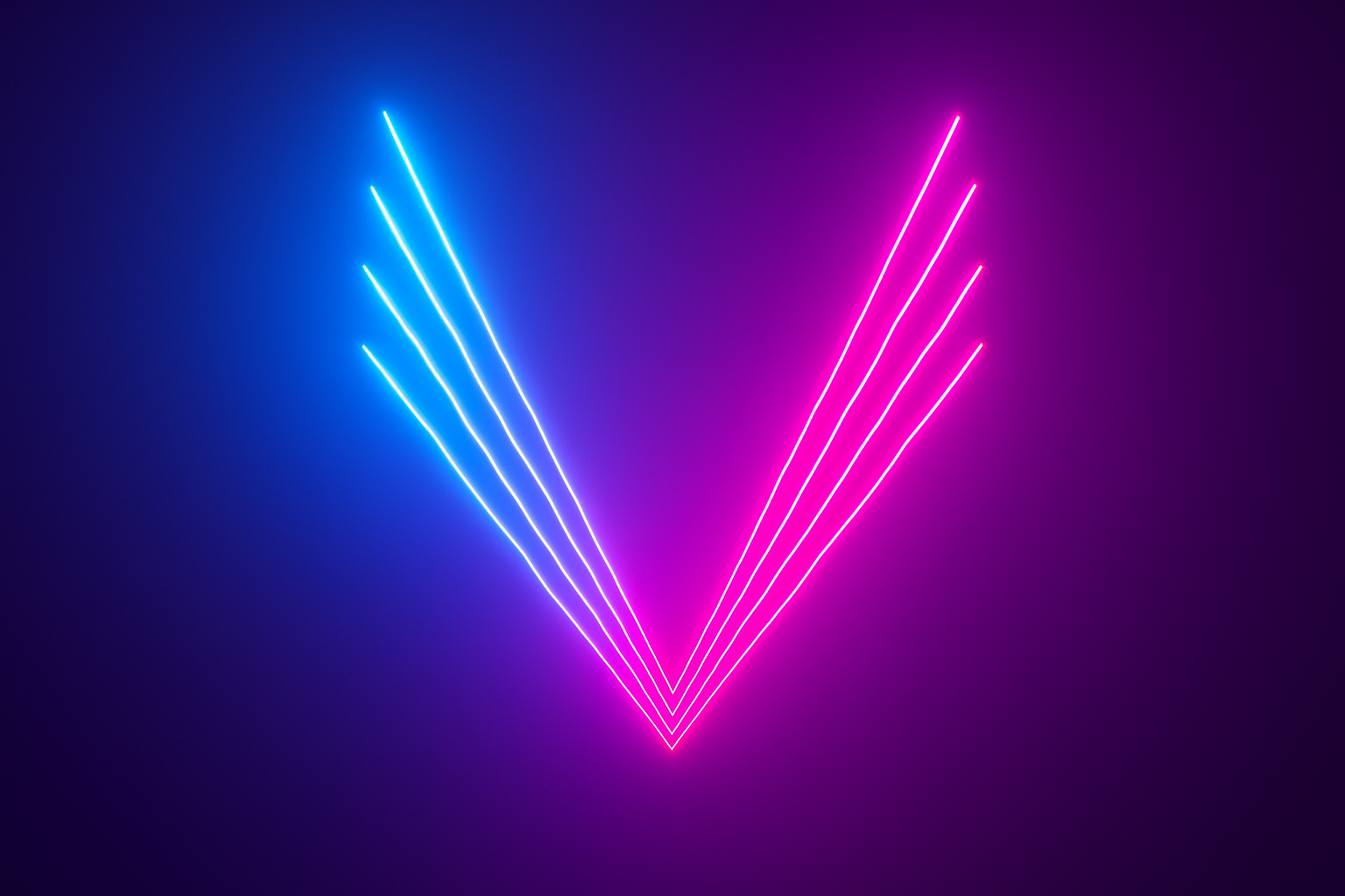/Collection: /by davooda/Type: PNG/A vibrant 3D rendering featuring ascending pink and blue neon lines against a solid dark background. The glowing lines create a striking visual effect, embodying a realistic aesthetic.
