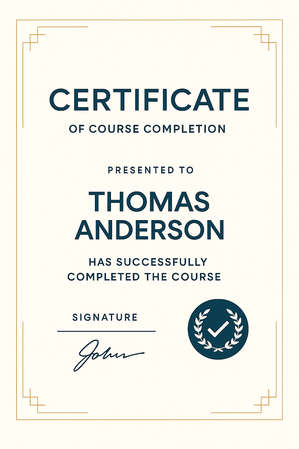 Elegant Course Completion Certificate with Gold Accents