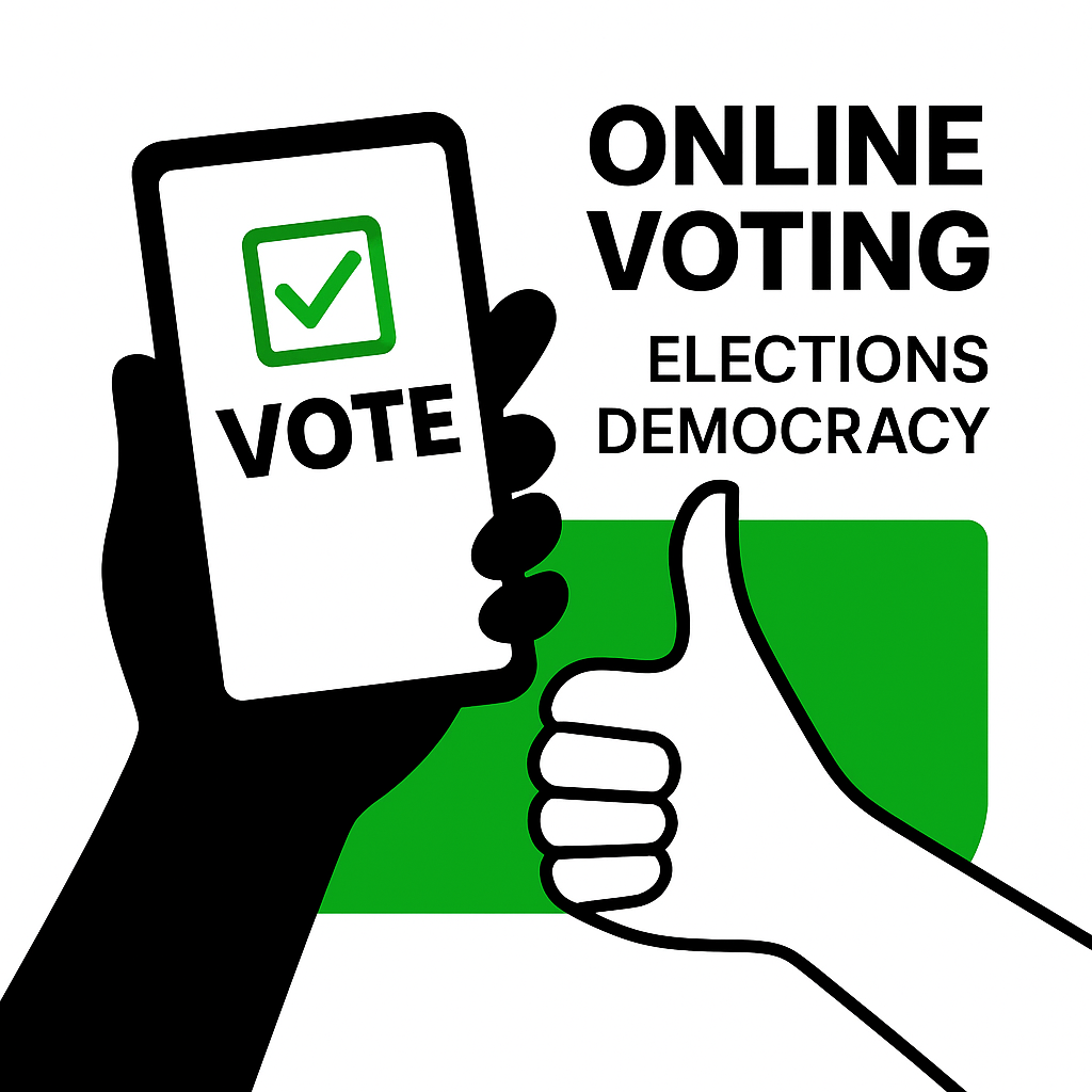 Informative graphic emphasizing the importance of online voting, featuring bold visuals and a modern design. Ideal for civic engagement campaigns and social media outreach.