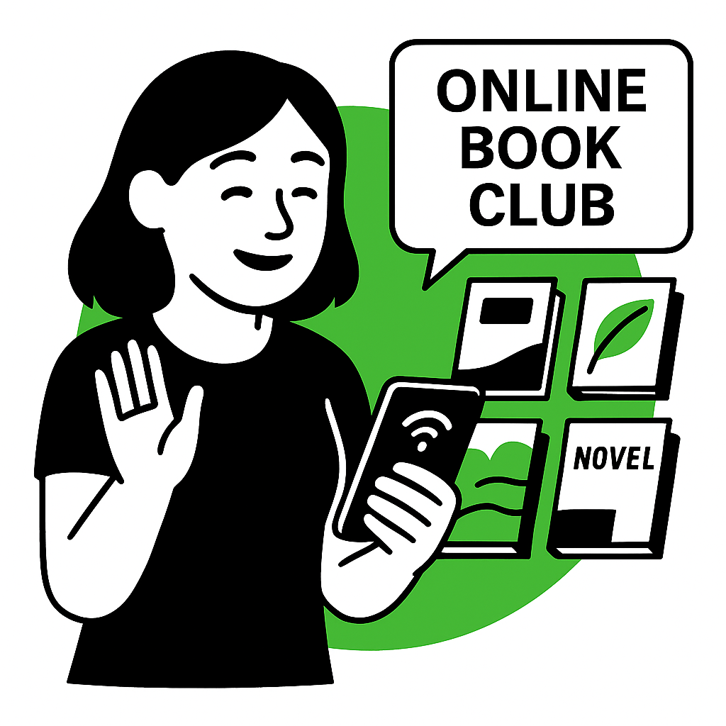 Illustrative Graphic of a Person Engaging in a Book Club Discussion