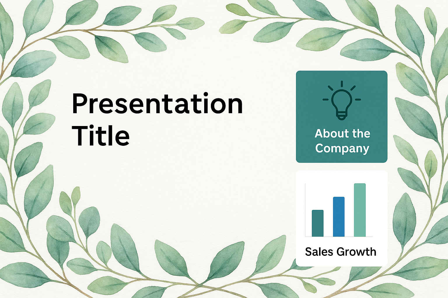 /Collection: /by davooda/Type: PNG/A visually appealing presentation slide featuring a leafy border and sections for title and content. Ideal for corporate settings and business presentations.