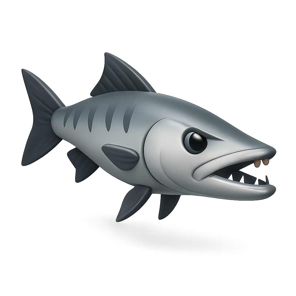 Stylized 3D Barracuda Icon with Isometric View
