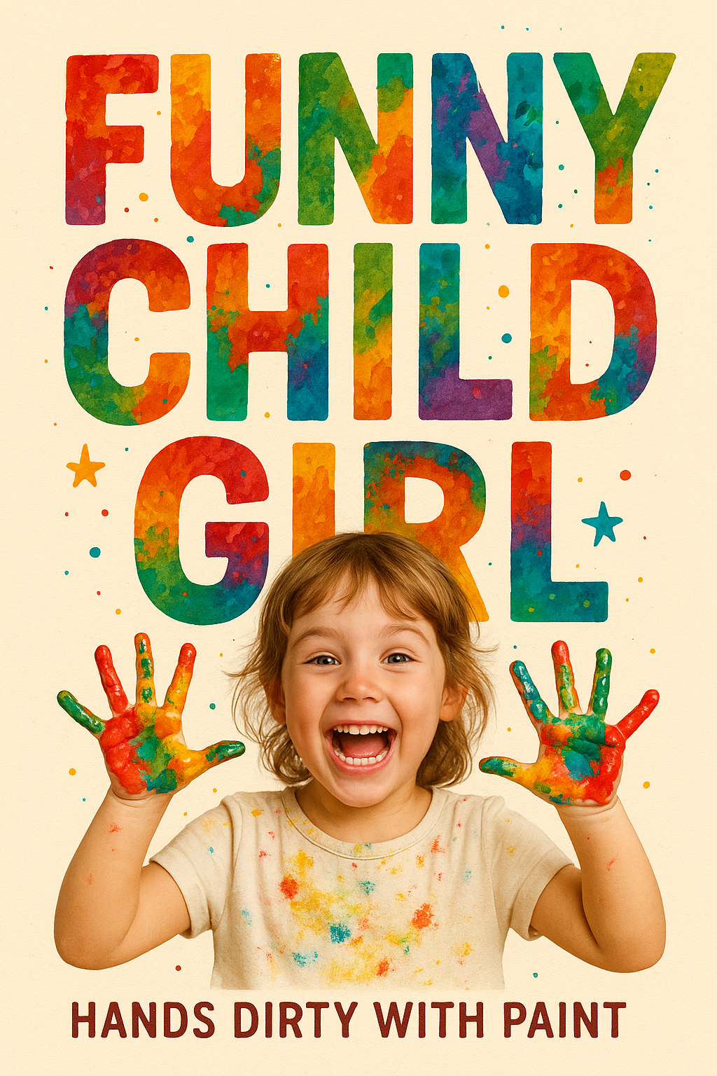 Vibrant image of a joyful child expressing creativity with painted hands, ideal for children's art programs or creative workshops.