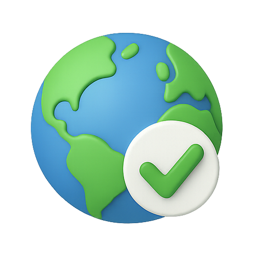 3D Globe Icon with Checkmark Symbolizing Global Approval