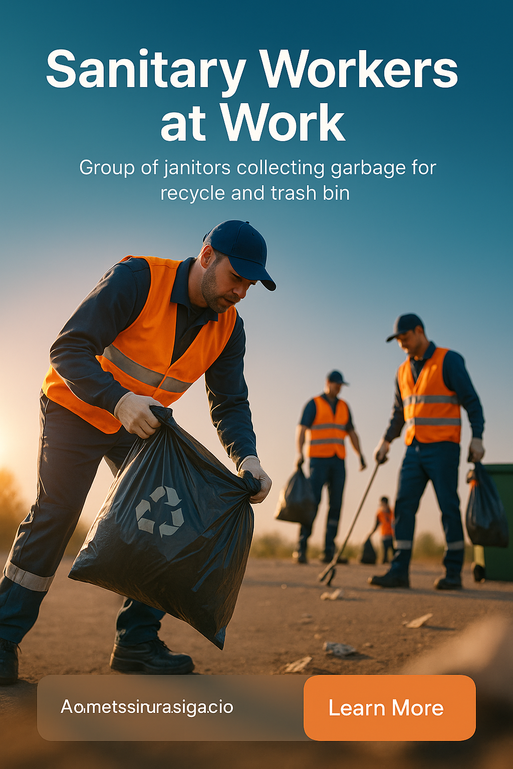 /Collection: /by davooda/Type: PNG/A social media post depicting janitors collecting garbage. The visual style is vibrant, highlighting teamwork in waste management. Ideal for environmental awareness campaigns.