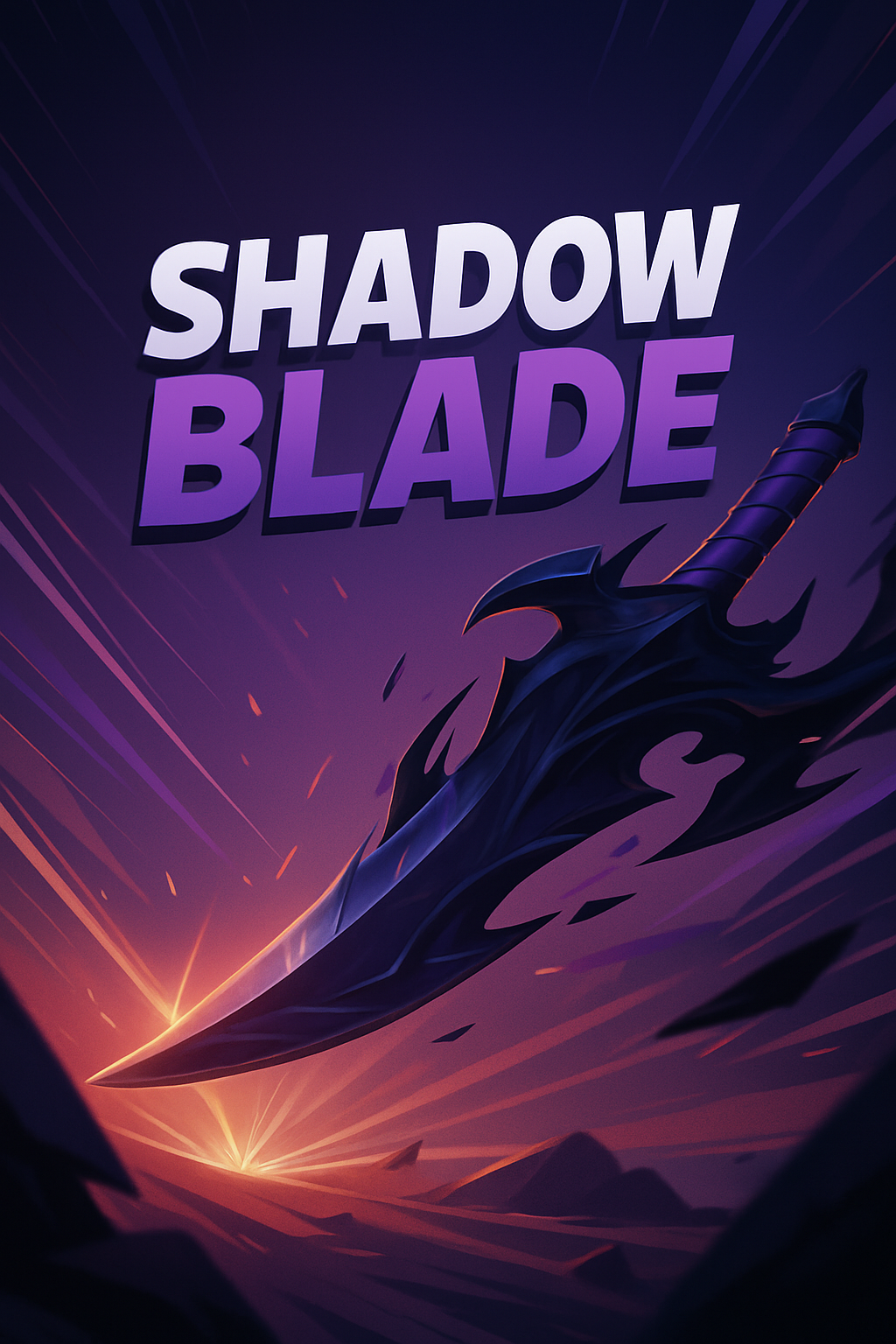/Collection: /by davooda/Type: PNG/A striking illustration of a shadow blade against a gradient background, featuring dynamic lines radiating from the center. The title 'SHADOW BLADE' is prominently displayed in bold, eye-catching typography.
