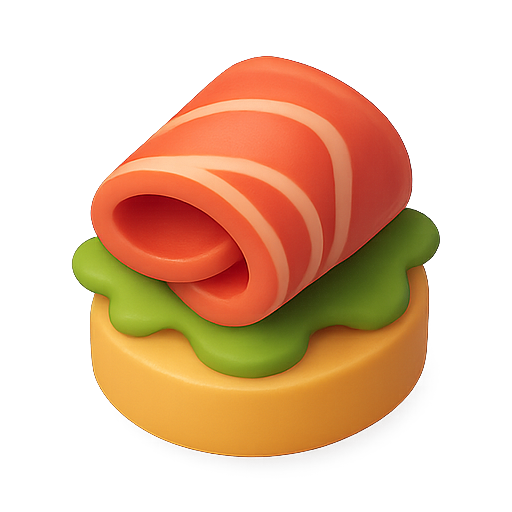 A playful and colorful sushi toy featuring a roll with vibrant colors and a base resembling a burger bun, ideal for children's play and educational purposes.