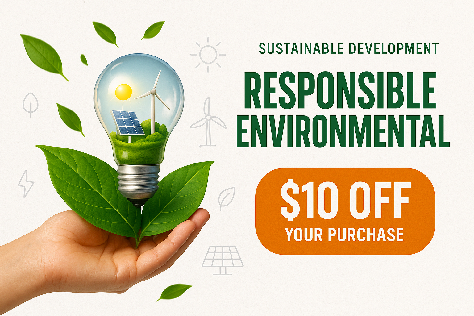/Collection: /by davooda/Type: PNG/A hand holds a light bulb that symbolizes sustainable energy, featuring nature elements like leaves and solar panels. The design balances realism and bold typography.