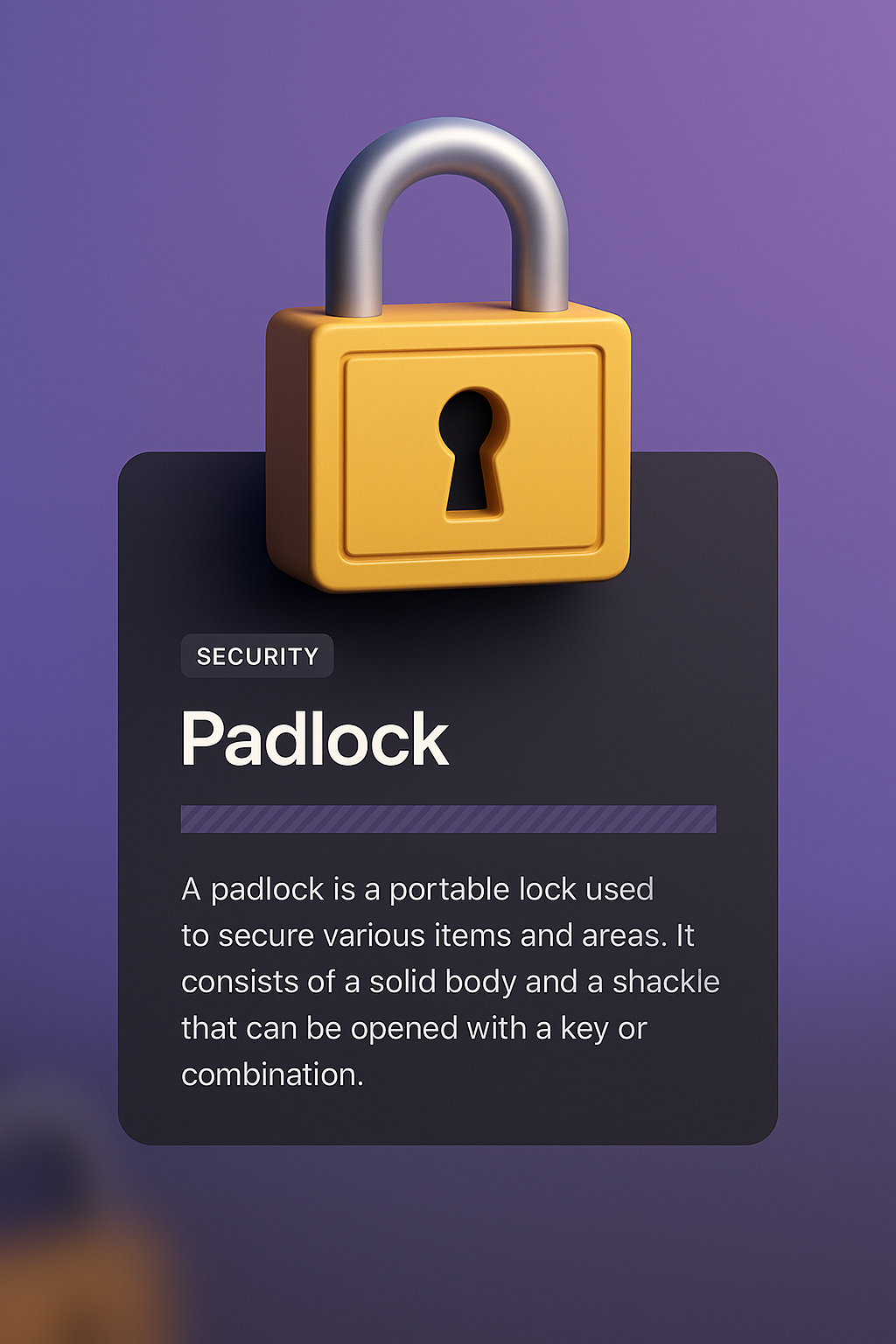 /Collection: /by davooda/Type: PNG/This image features a 3D padlock with a vibrant gradient background. Accompanying it is a dark information block detailing the padlock's function, enhancing the overall visual appeal.