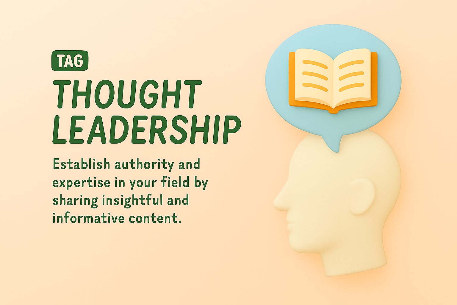 /Collection: /by davooda/Type: PNG/A creative illustration depicting the concept of thought leadership, featuring a head silhouette with a book icon, ideal for educational and professional content.