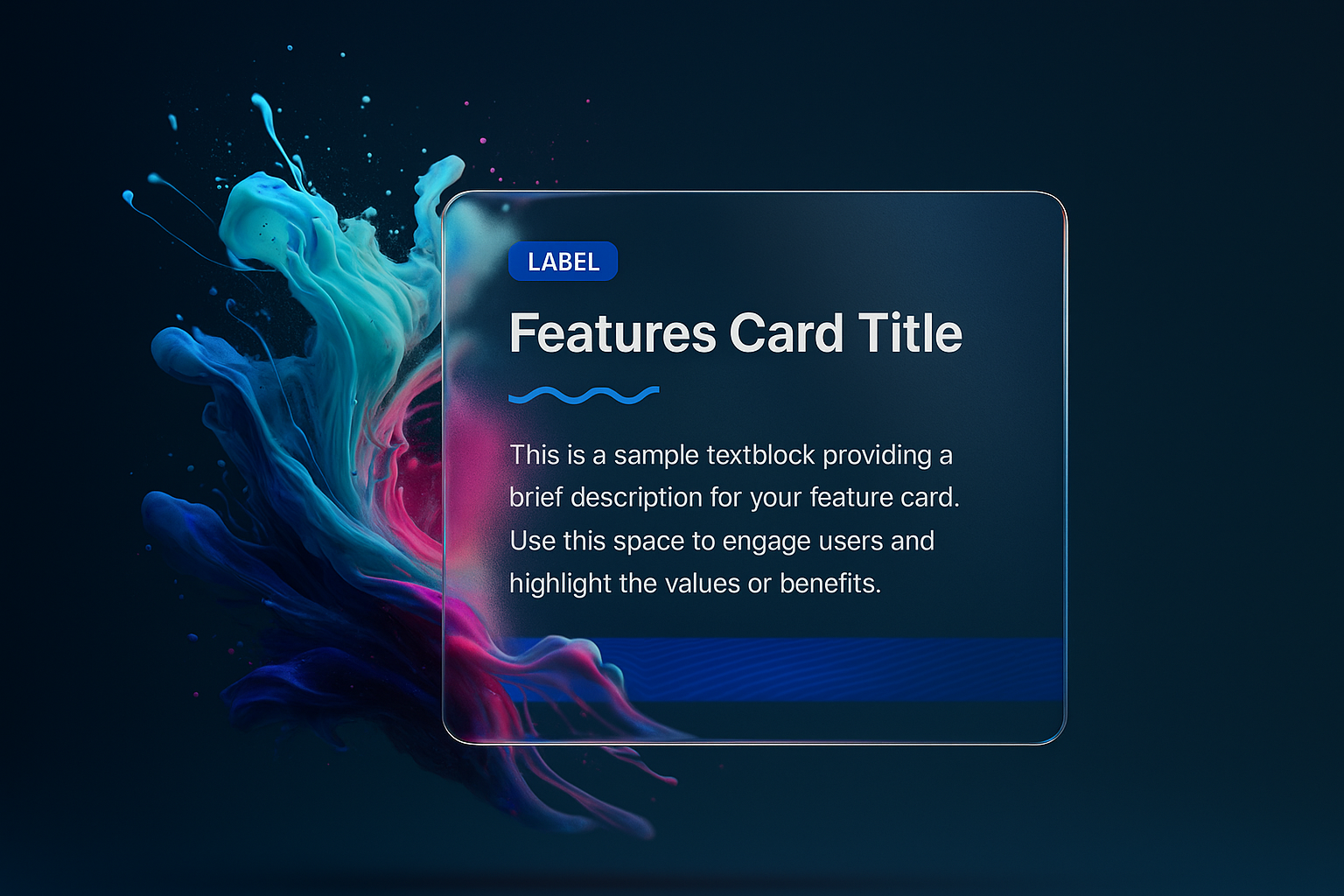 /Collection: /by davooda/Type: PNG/An abstract splash of vibrant colors against a dark background, integrated with a features card that showcases a title and description. The design emphasizes depth and realism.
