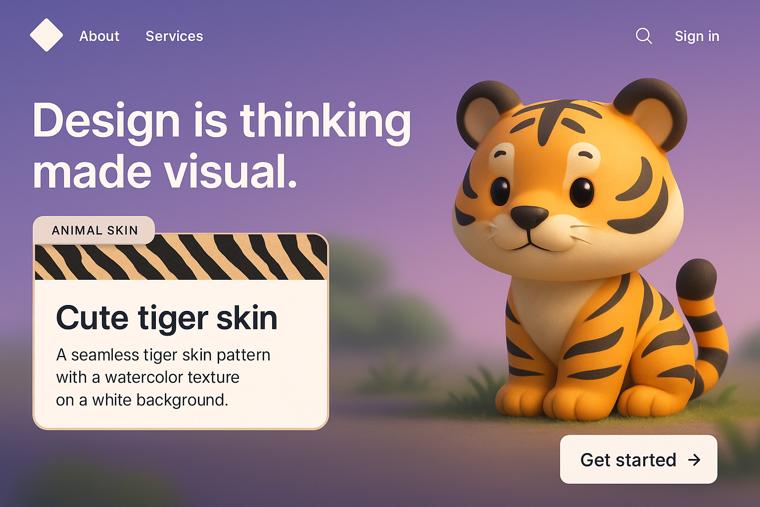 Modern Web Page Design Featuring Cute Tiger Illustration