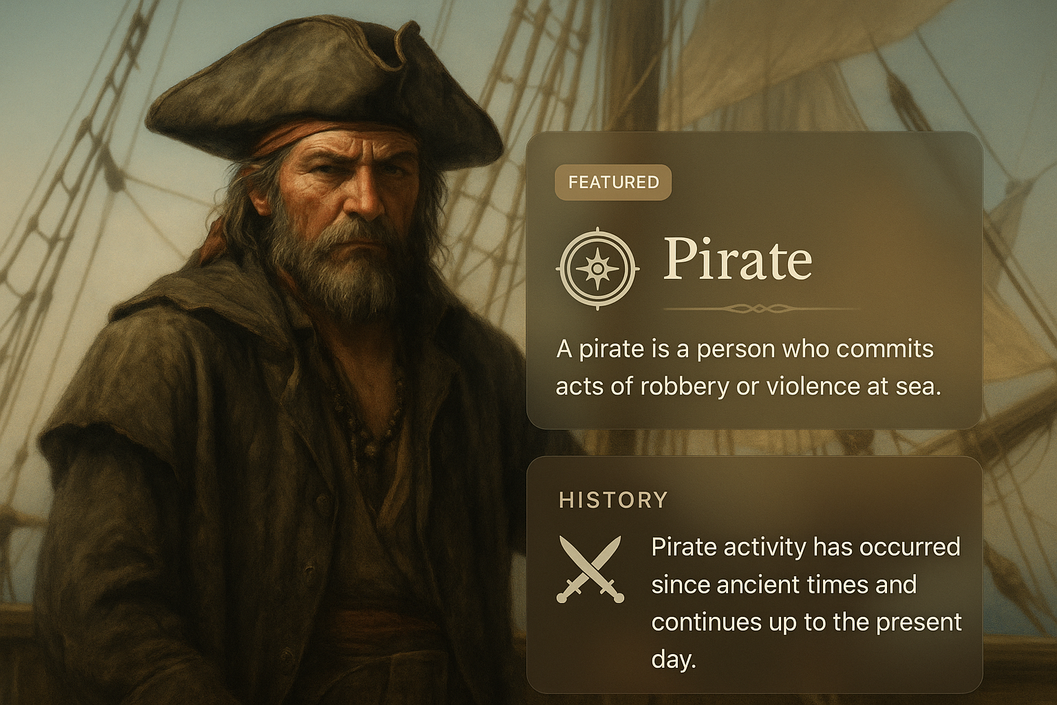 Realistic Pirate Illustration with Informative Blocks