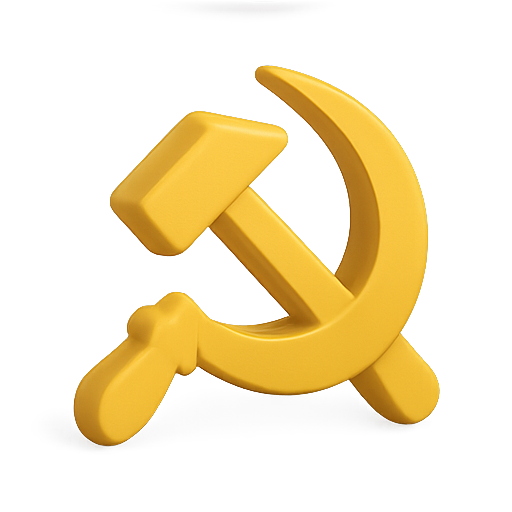 A vibrant 3D icon of the hammer and sickle, representing communist ideology, featuring a smooth design and bright yellow color, suitable for political graphics or educational content.