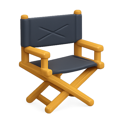A 3D-rendered director's chair icon featuring a navy blue seat and yellow frame, suitable for creative projects, film-related graphics, or design themes.