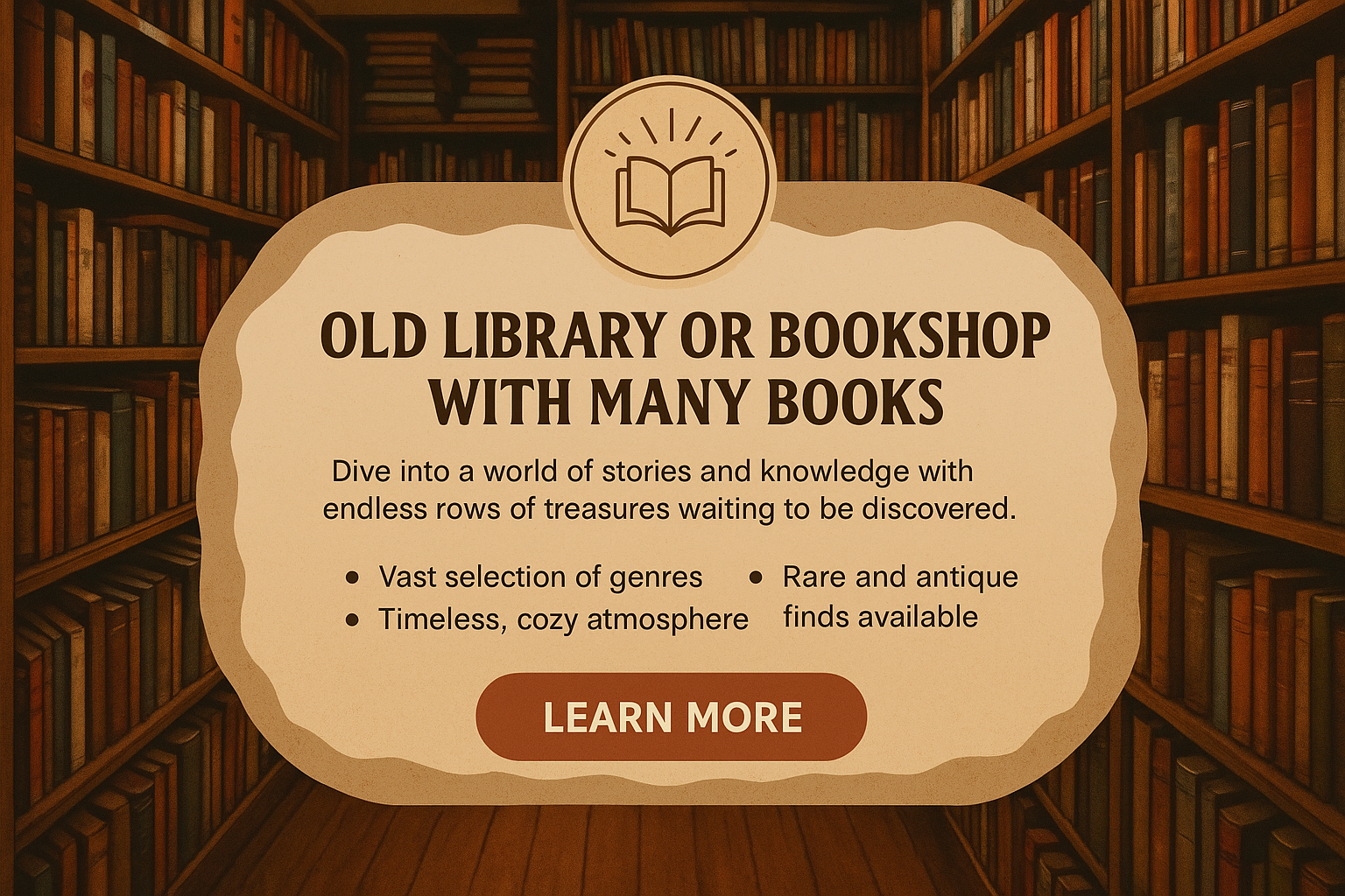 Charming Old Library with Bookshelves and Cozy Atmosphere
