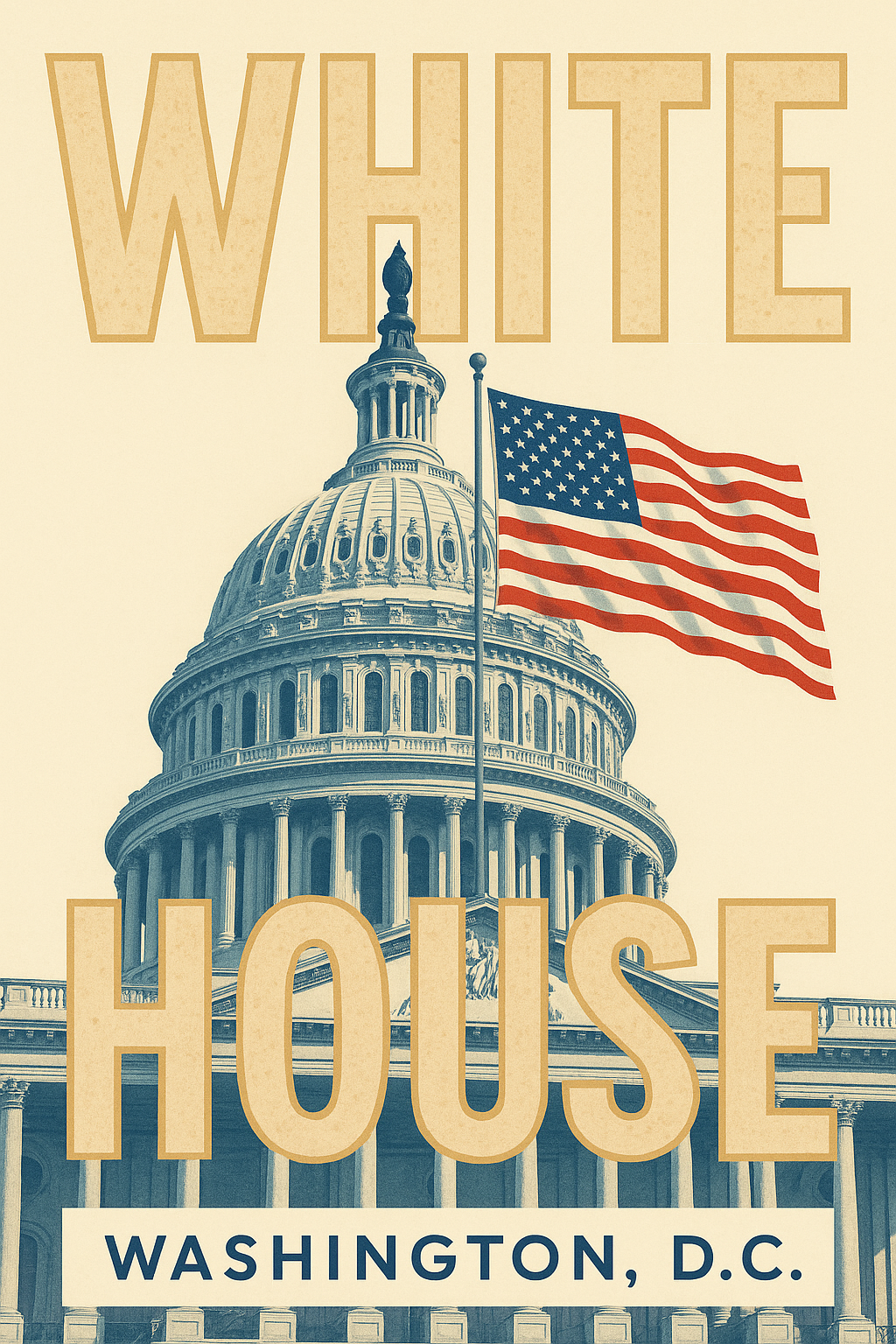 Vintage Poster of the White House with American Flag