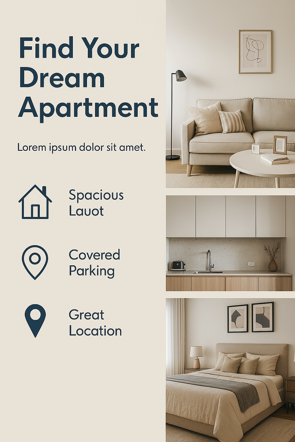 Real Estate Promotion Graphic Featuring Apartment Highlights