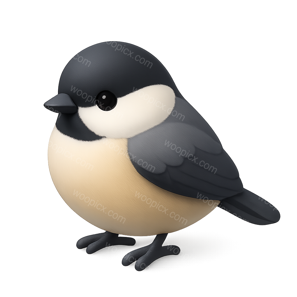A fluffy 3D icon of a chickadee in a three-quarter view, featuring a transparent background. The illustration emphasizes a soft, volumetric look with detailed textures.