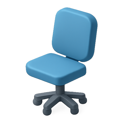 3D rendered image of a modern blue office chair with a minimalist design, suitable for showcasing office furniture in catalogs or online stores.