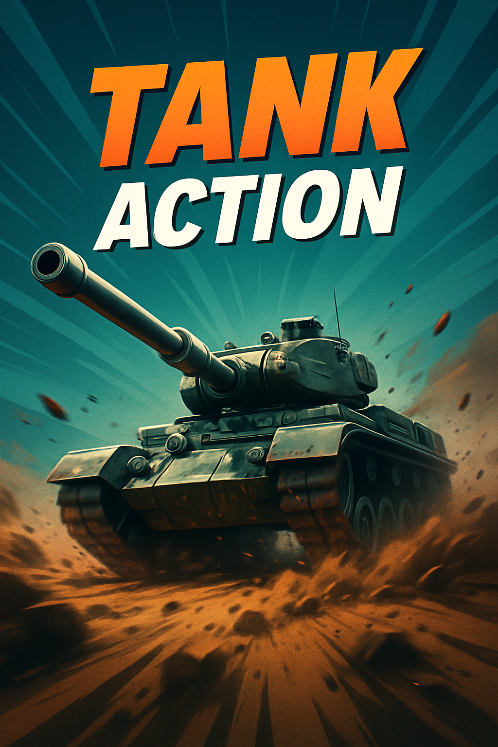 An artistic representation of a tank in motion, highlighted by dynamic lines and a bold title. The background features a smooth gradient, enhancing the action-packed scene.