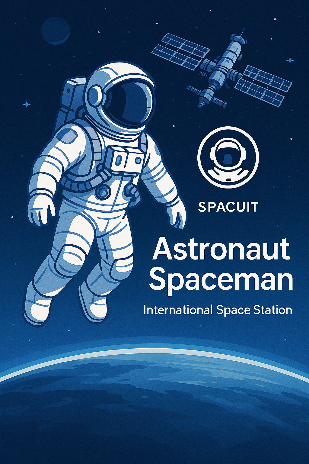 /Collection: /by davooda/Type: PNG/Digital illustration featuring an astronaut floating in space with the International Space Station in the background. Ideal for educational content about space exploration.