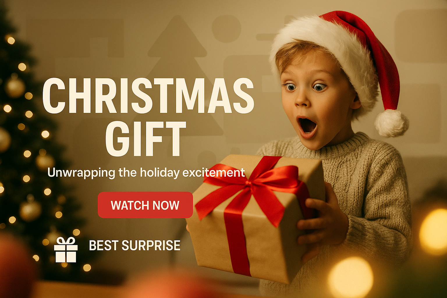 Festive Christmas Gift Promotion with Excited Child