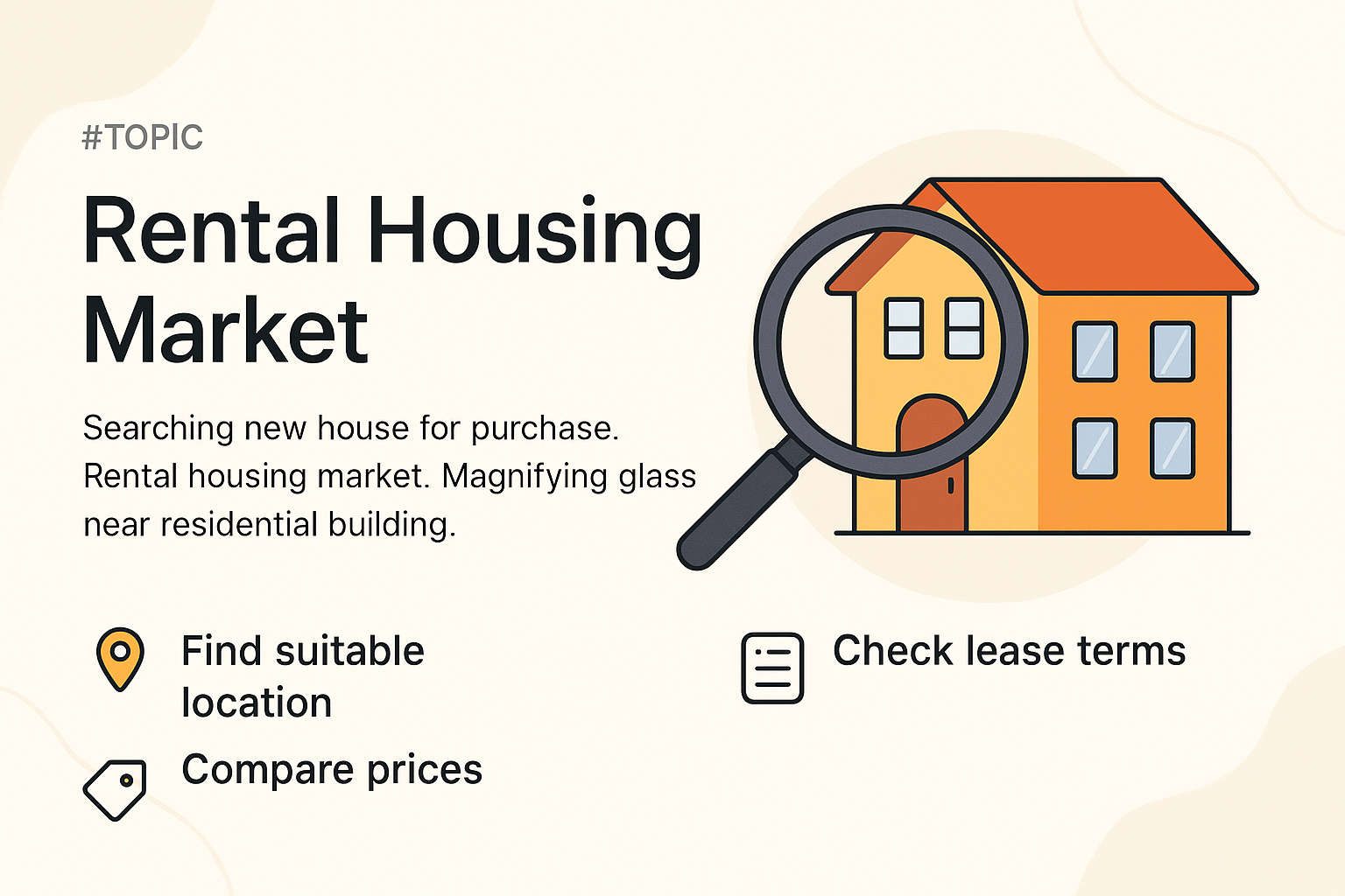 An informative infographic detailing the rental housing market, featuring a house illustration and magnifying glass, ideal for real estate discussions.
