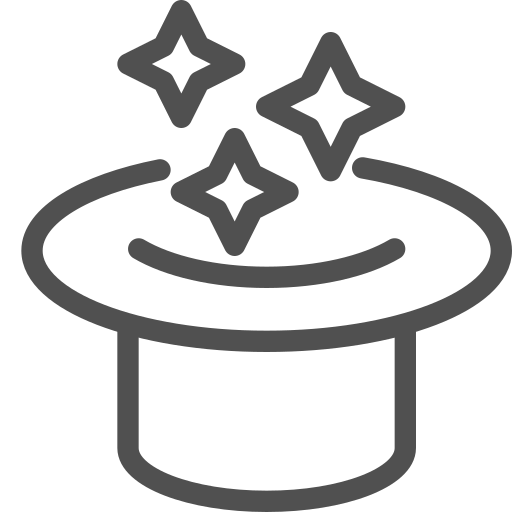 outline simple icon: hat, illusion, magic, performance, stars