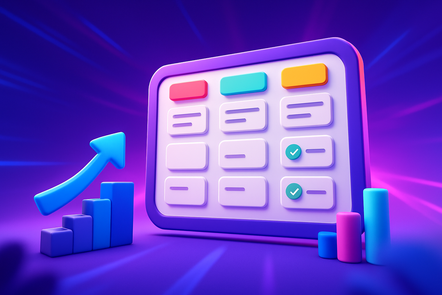 /Collection: /by davooda/Type: PNG/A vibrant, dynamic 3D illustration of a goal tracker board featuring colorful elements, a gradient background, and supporting visual graphs for a professional yet engaging look.