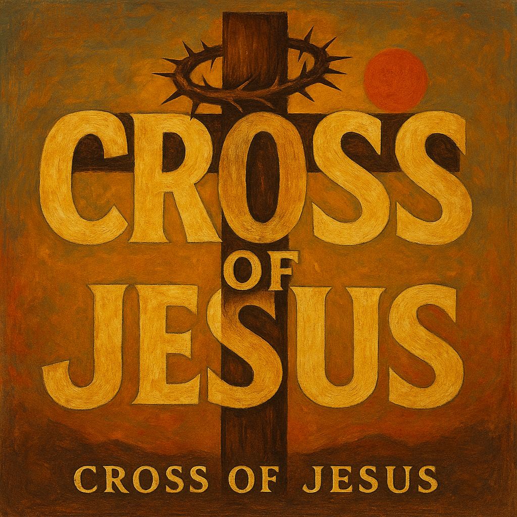 A visually striking artwork featuring the cross of Jesus with bold typography and warm colors, suitable for religious themes and spiritual contexts.