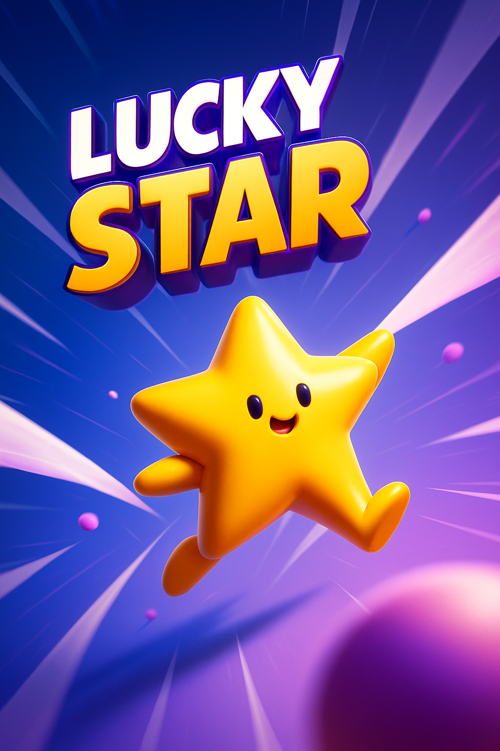 /Collection: /by davooda/Type: PNG/A vibrant 3D illustration of a cheerful star character named Lucky Star, set against a smooth gradient background. Dynamic lines radiate outward, creating a sense of motion and excitement.