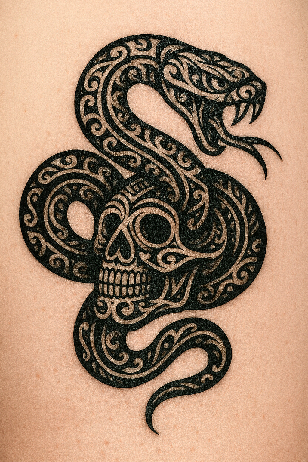 Intricate Snake and Skull Tattoo Design