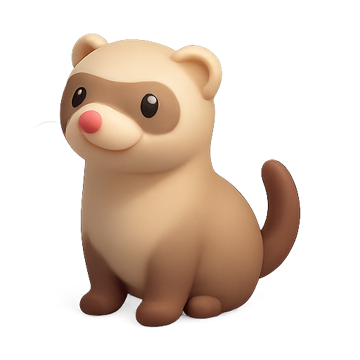Adorable cartoon-style ferret character with a soft, rounded design, perfect for children's media, toys, or animations. The character features friendly facial expressions and a minimalist aesthetic.