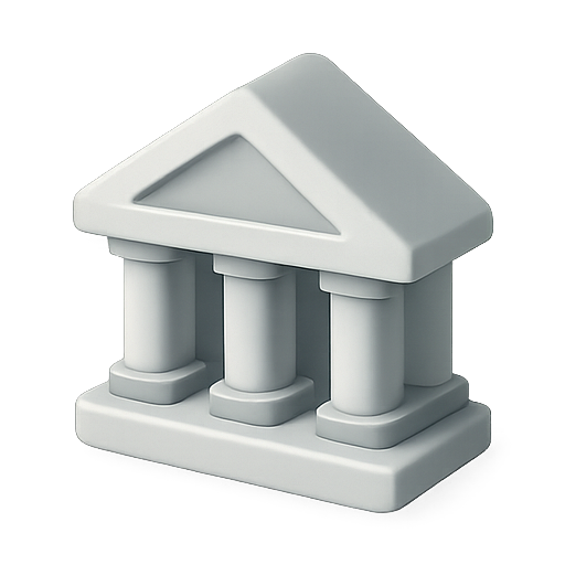Stylized 3D representation of a classical building with columns, suitable for architectural or educational themes. This graphic can be used in digital applications or as an icon.