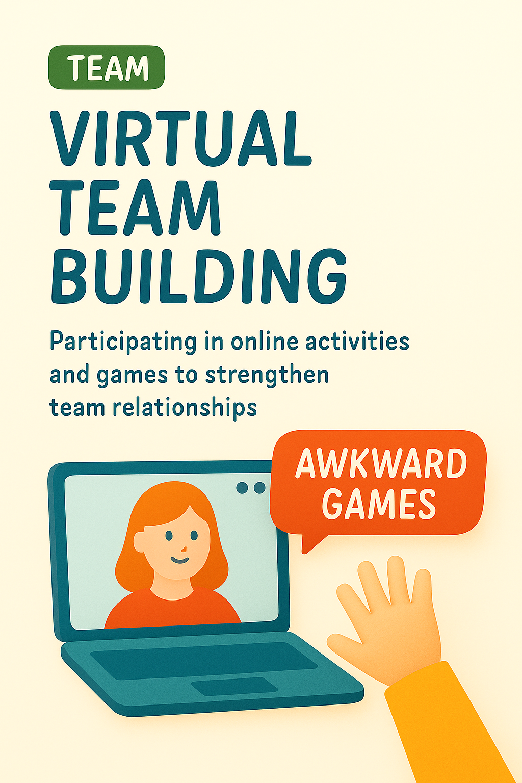 /Collection: /by davooda/Type: PNG/Engaging graphic illustrating virtual team building activities, featuring playful elements that highlight online interactions and games aimed at strengthening team relationships.