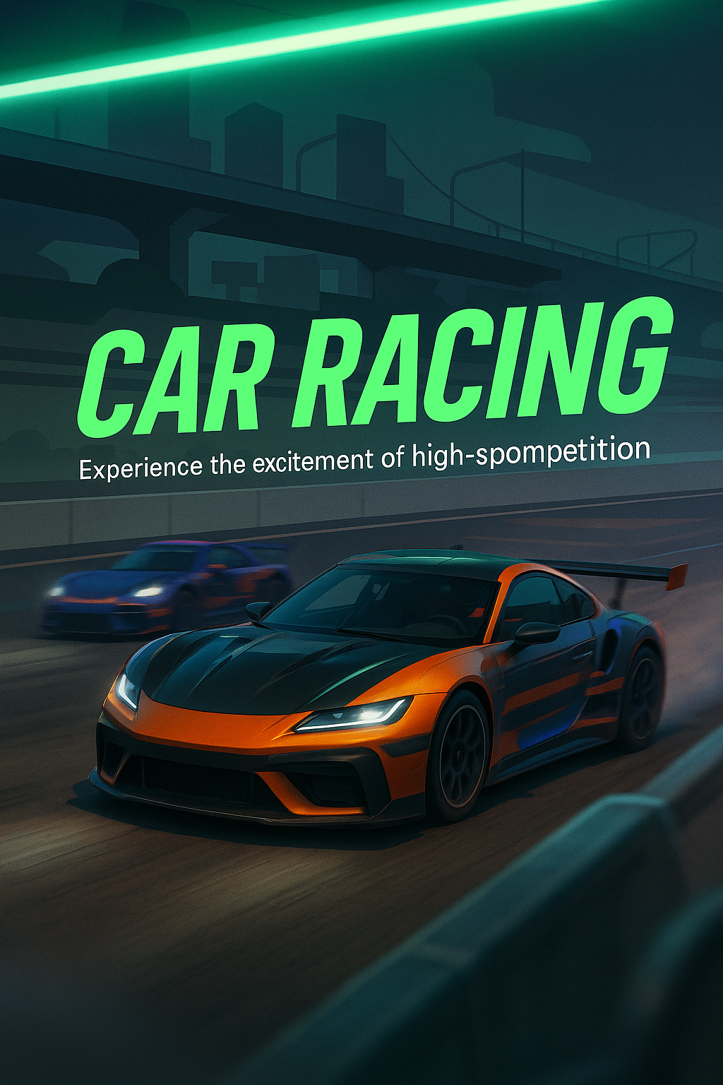 /Collection: /by davooda/Type: PNG/A thrilling digital illustration showcasing a high-speed car racing scene. The artwork features a sleek, modern sports car set against an urban backdrop, perfect for gaming or automotive promotion.