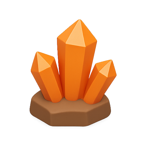 A visually appealing 3D model of orange crystals set on a brown base, perfect for use in gaming, animations, or digital art projects. The simplistic design adds a playful and vibrant touch.