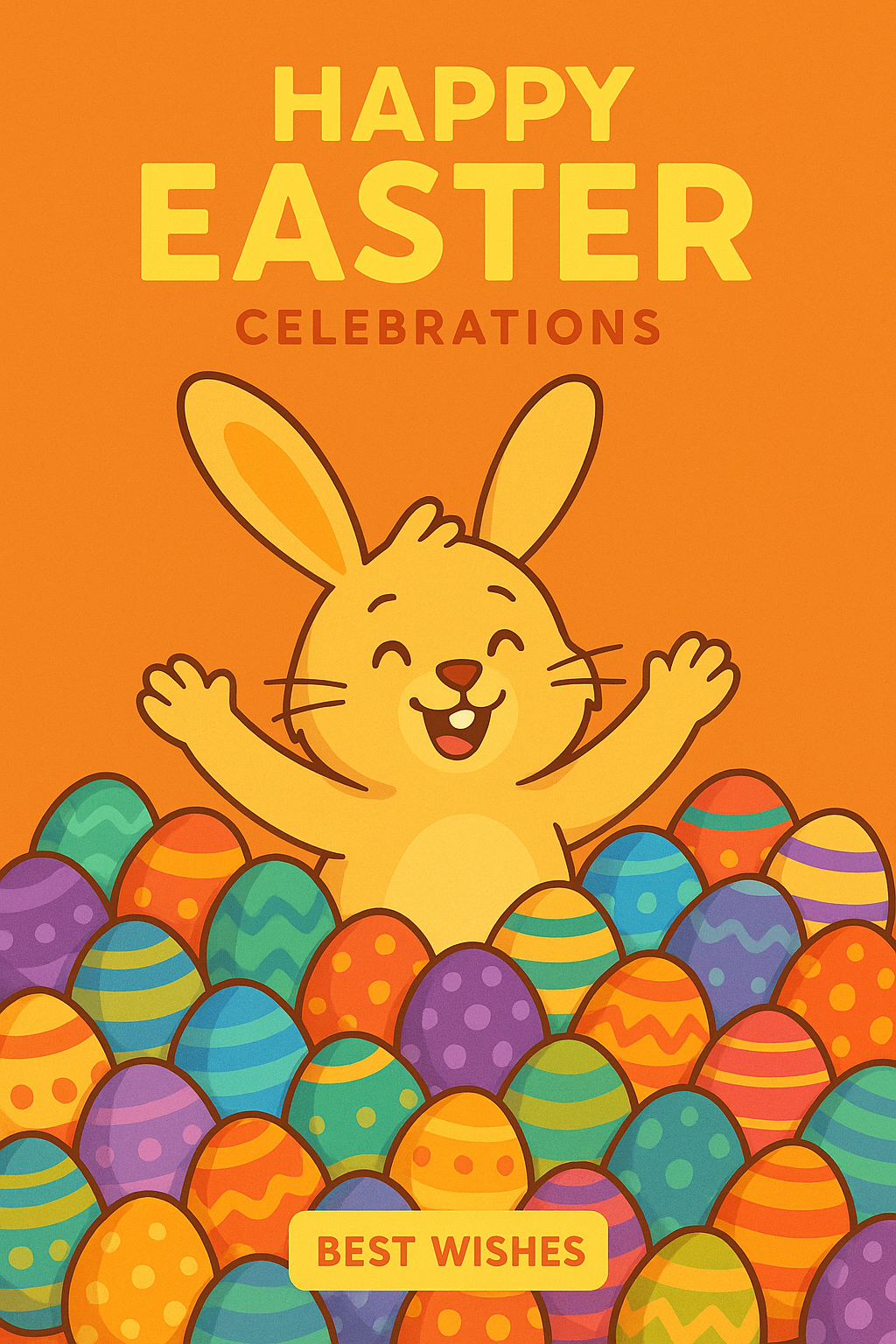 Cheerful Easter Celebration Graphic with Bunny and Eggs