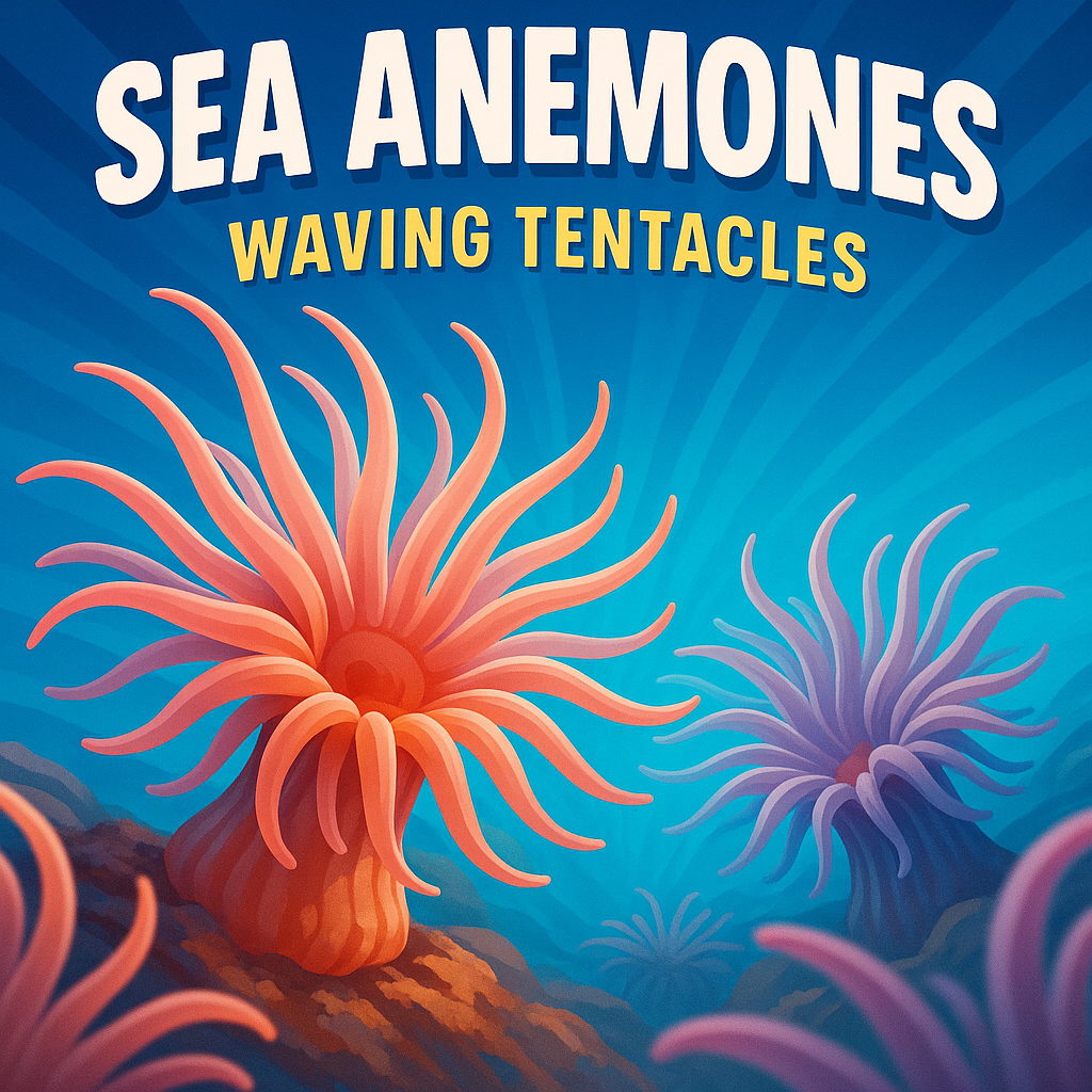 Colorful Illustration of Sea Anemones with Waving Tentacles