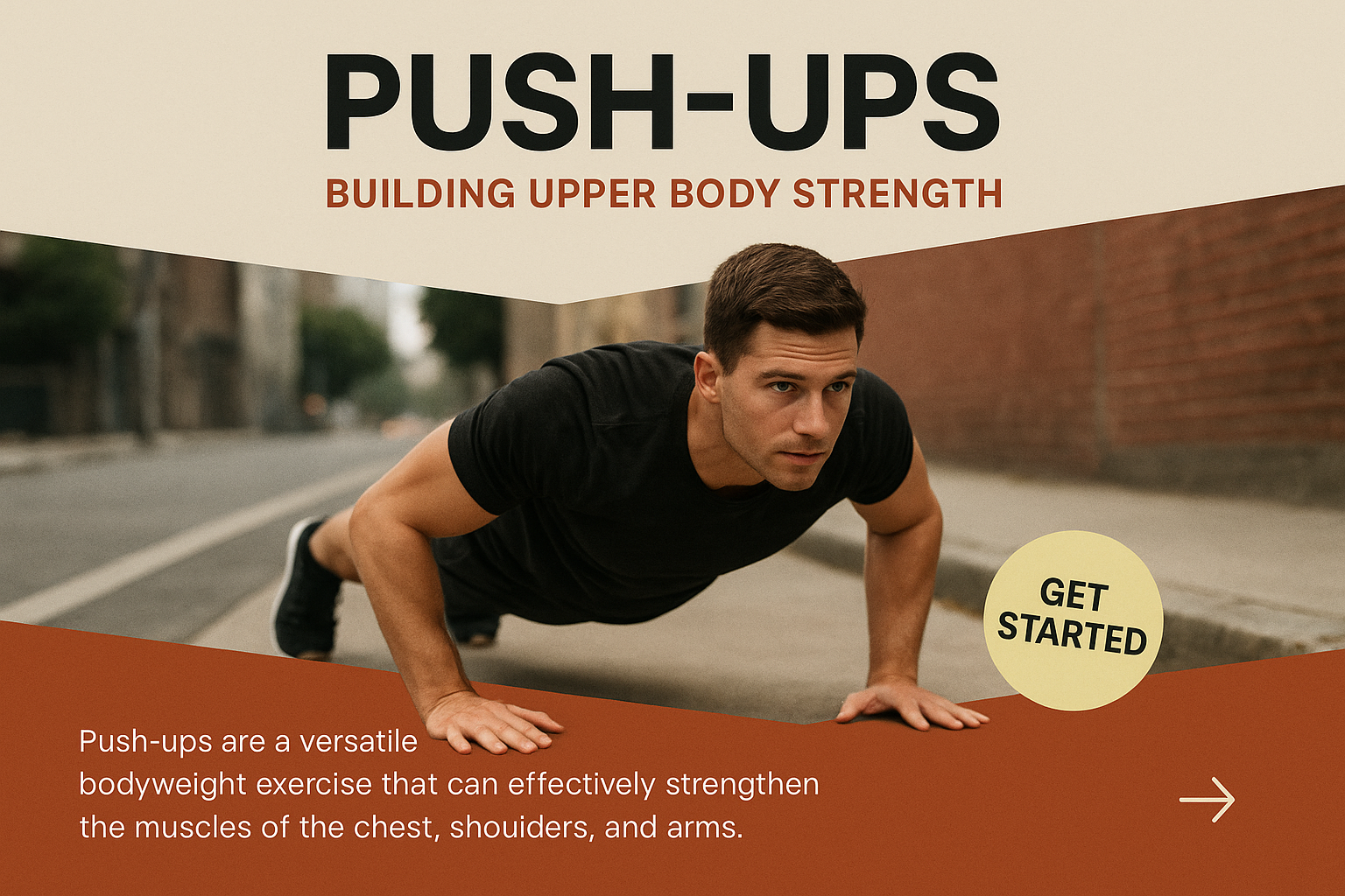 /Collection: /by davooda/Type: PNG/A dynamic image showcasing a man performing push-ups on a city street, highlighting upper body strength. The design features contrasting colors and an engaging layout.