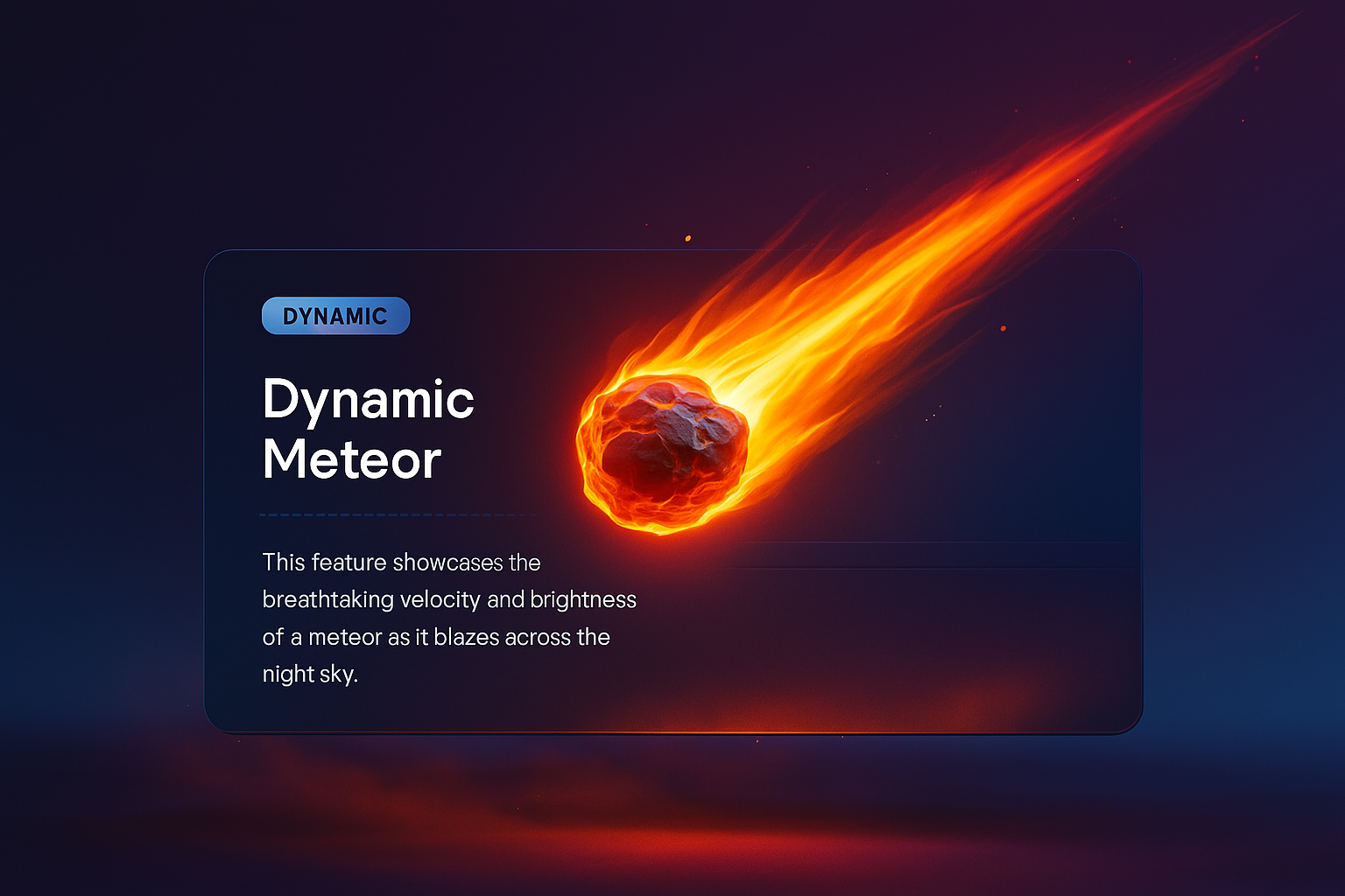 /Collection: /by davooda/Type: PNG/A stunning 3D illustration of a flaming meteor with a glowing molten tail, set against a smooth gradient background. The design emphasizes the meteor's velocity and brightness in the night sky.
