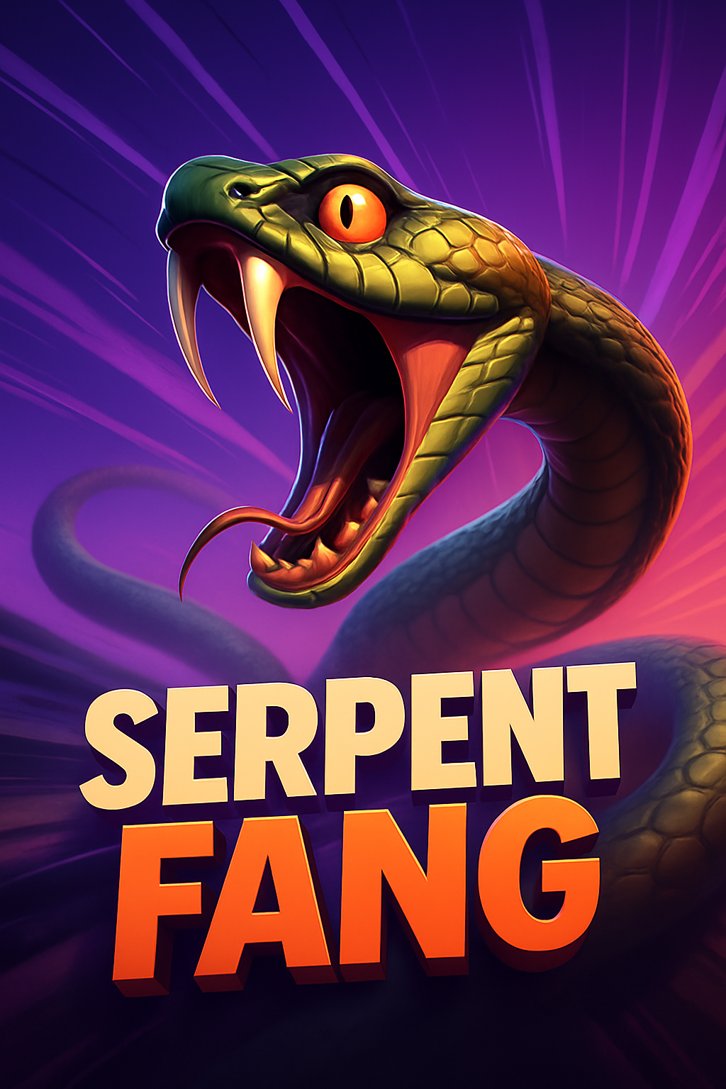 /Collection: /by davooda/Type: PNG/A visually striking image featuring a serpent with fangs bared, set against a vibrant gradient background. The title 'SERPENT FANG' is prominently displayed in bold, dynamic font, enhancing the energetic feel.