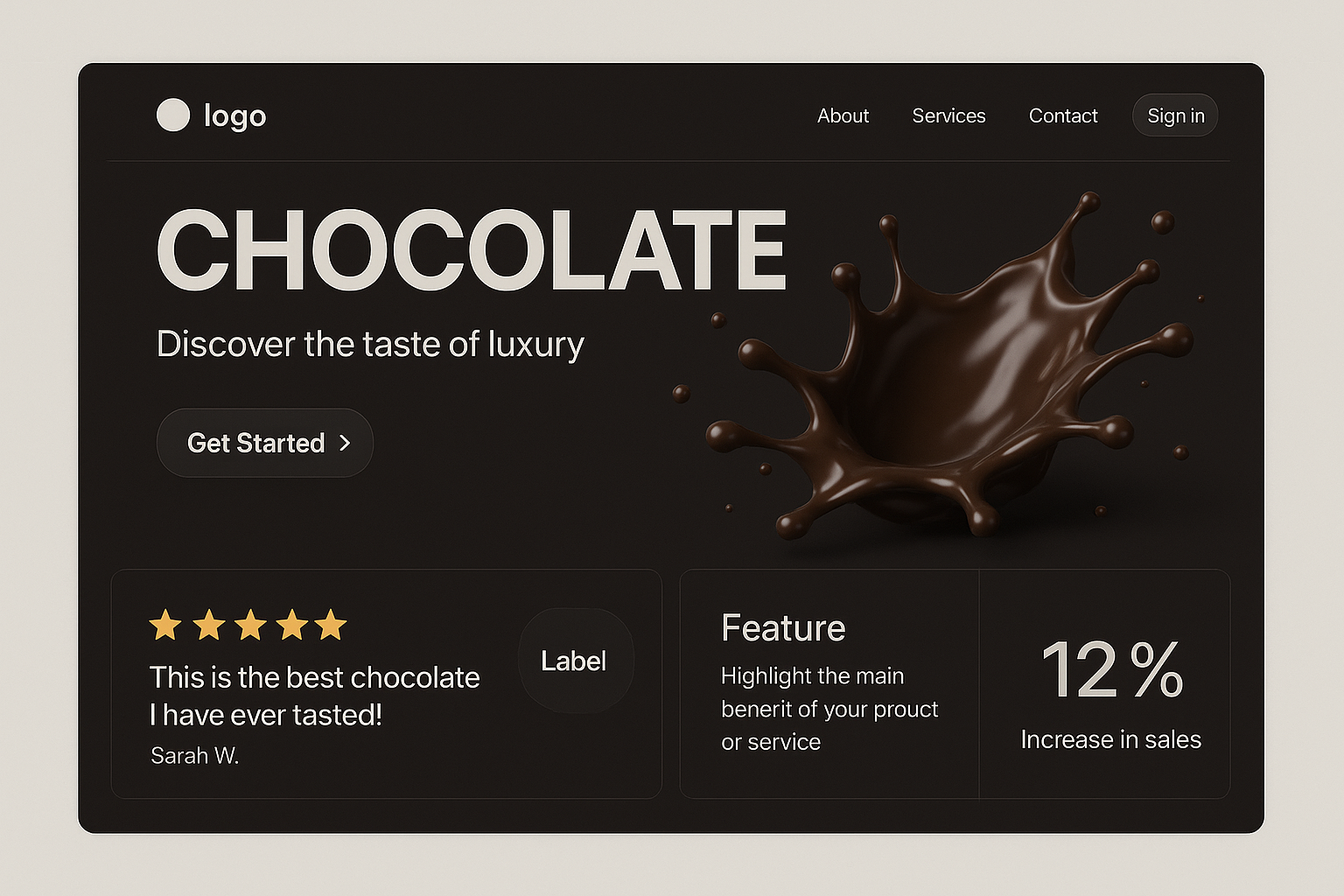 /Collection: /by davooda/Type: PNG/A modern landing page showcasing a chocolate theme with a bold design. Featuring a large headline, action button, and sleek layout for optimal user experience.