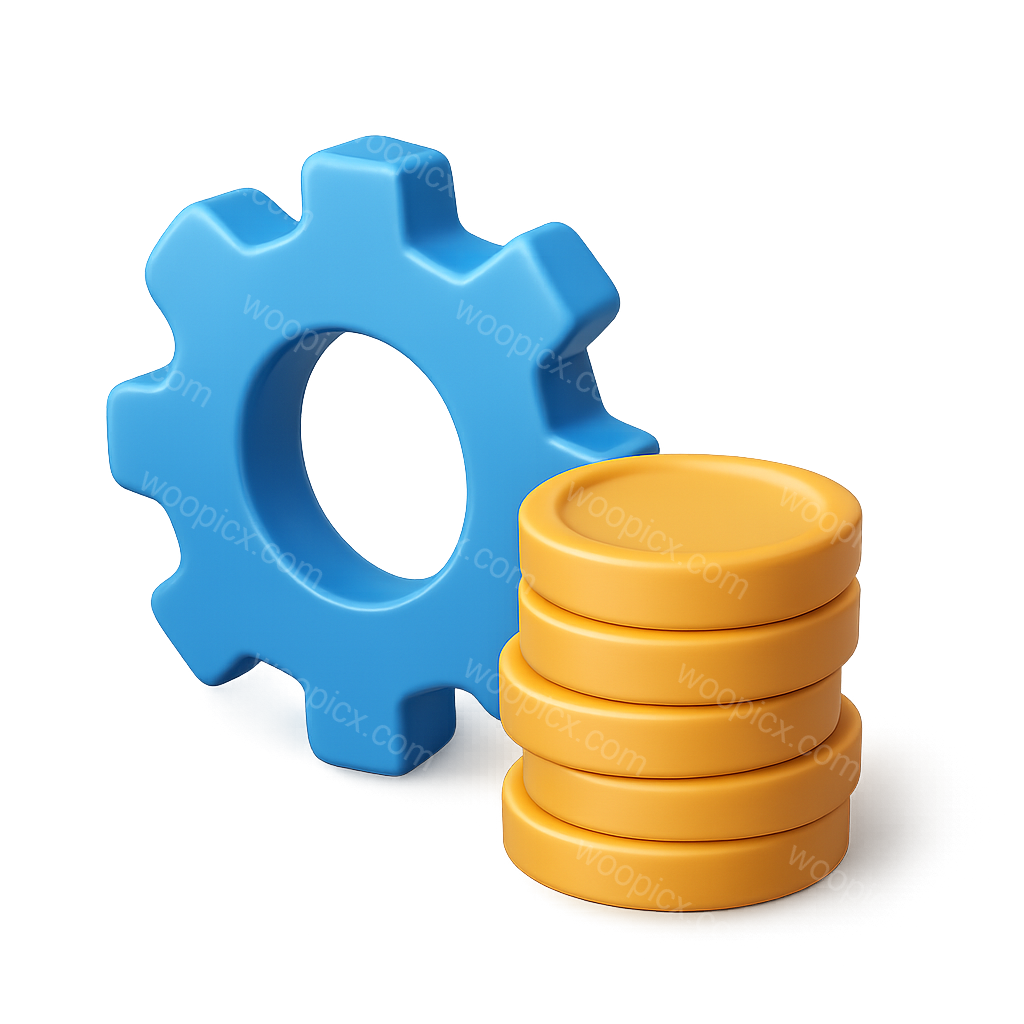 3D Gear Icon Next to Stack of Coins Illustration