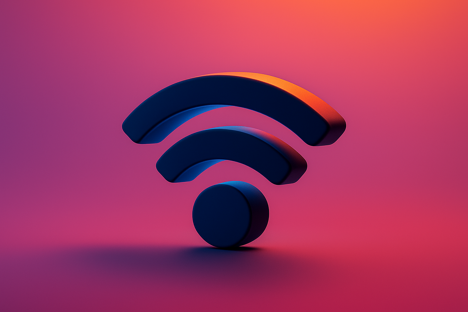 A stylized 3D representation of a wireless signal icon set against a vibrant gradient background. Ideal for tech-related content and digital communications.