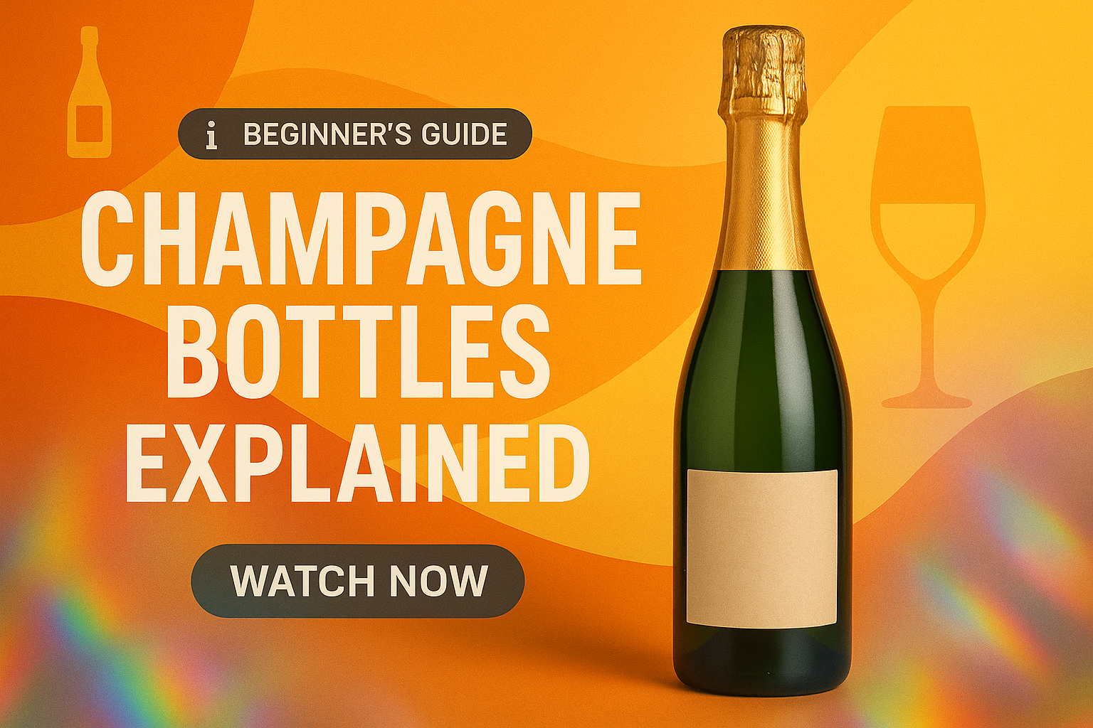 /Collection: /by davooda/Type: PNG/Informative promotional image featuring a champagne bottle with a beginner's guide theme. The vibrant background and clean typography make it ideal for social media or video content.